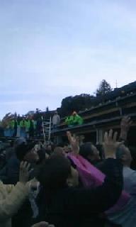 餅はあまりにも長蛇の列だったのであきらめて、みかん投げには、はりきって参加しました。