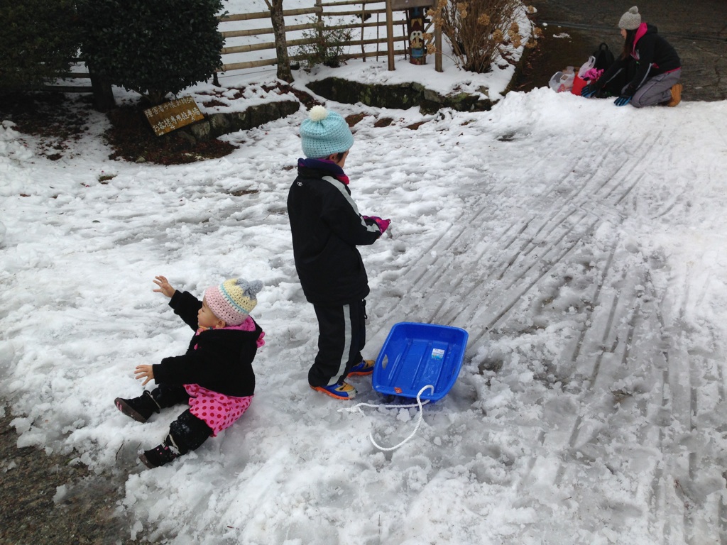 子供たちはロープウェイ乗り場の横に少しだけ積もっていた雪で遊んで、それなりに楽しんでくれました。
