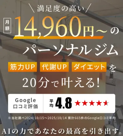 エクササイズコーチは、アメリカ発のAIを活用したパーソナルジムです。運動科学とテクノロジーを組み合わせることで、最短1回20分の短時間で効率の良いトレーニングができます。