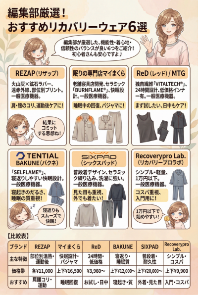 おすすめリカバリーウェア比較表(2026年最新版)