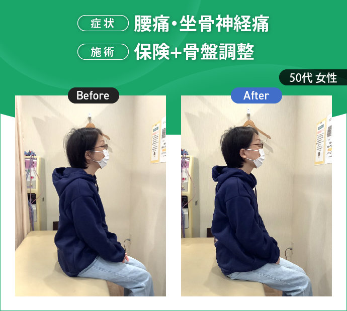 腰が痛くて眠れなかったのに1度も起きずに眠れる様になりました。右臀部も痛みが無くなり、普面に座れる事になって良かったです。