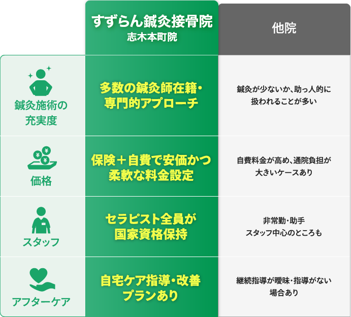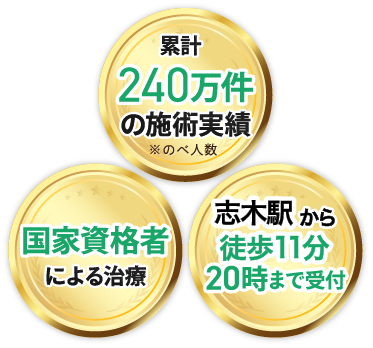 国家資格を持つ鍼灸師・柔道整復師が在籍し、あなたの症状に最適な施術を行います。