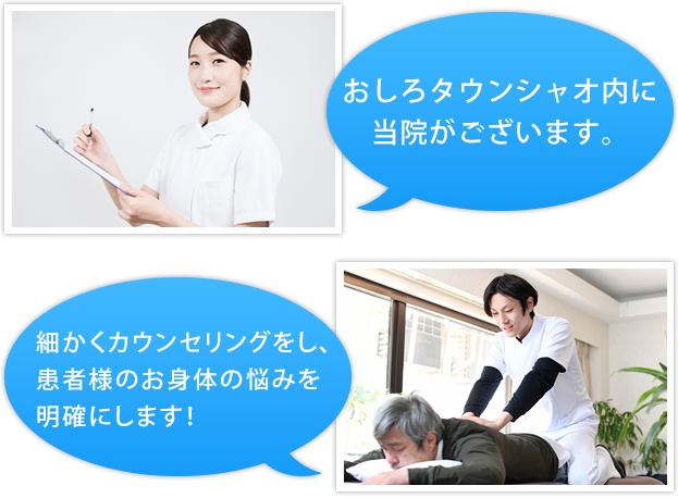 「ここにきて良かった」と思っていただけるよう、お身体の悩みにスタッフ一同誠心誠意対応させていただきます。